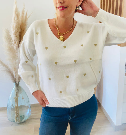 ÉpuiséPull cœurs dorés LISON